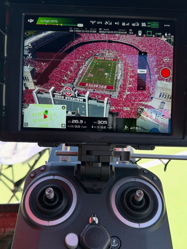 LDF has been very excited to work with The Ohio State University for the 2025-26 football season to provide cameras and drones for their stadium broadcast at the Ohio Stadium. Live video feeds from the drone inside a temporary flight restricted (TFR) classified airspace by the FAA requires some challenging coordination of stakeholders, agency approvals and network TV drones. Go Buckeyes!!!